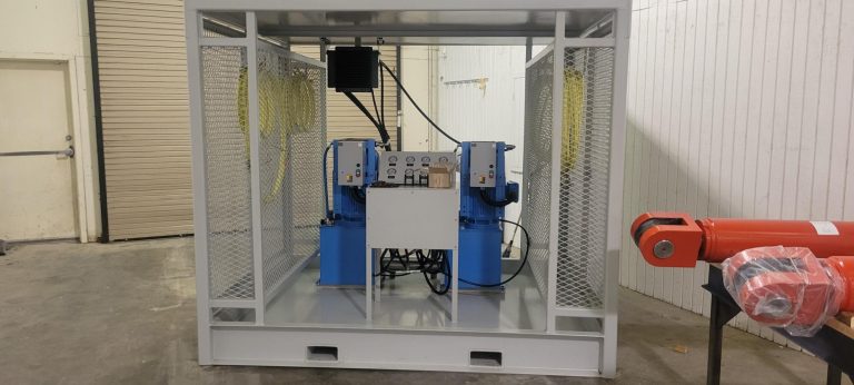 This HPU consists of two 30HP electric motor that each drive a checkball pump rated to 10,000psi at 4.2gpm. The system also includes a safety relief valve to prevent over pressurization.