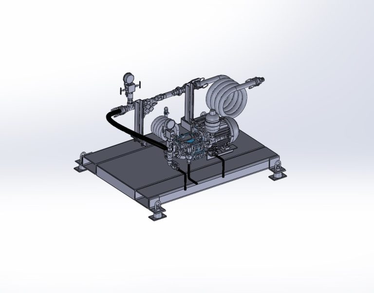 This washdown unit consists of a 2HP electric motor that drives a water pump rated to 1500psi at 4.2gpm. The system also includes a factory set (800PSI) safety relief valve to prevent over pressurization. The pump has two low pressure inlets and two pressure outlets.